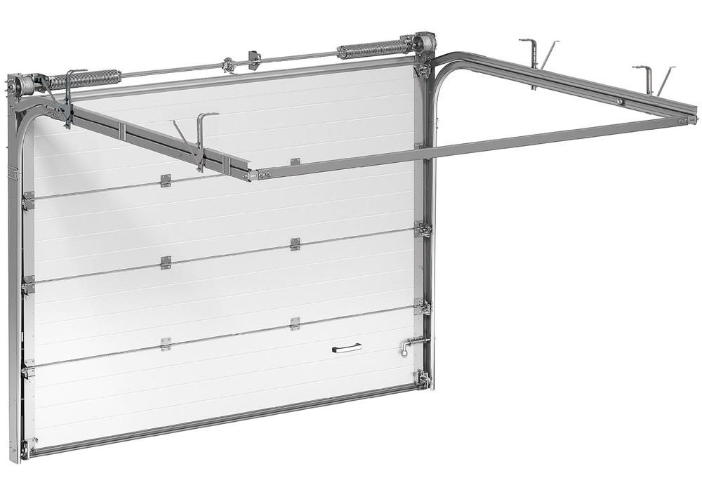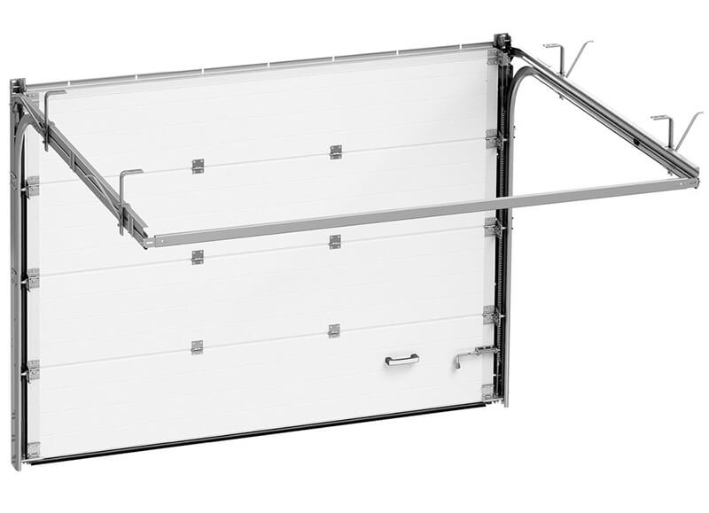 Гаражні секційні ворота - це розділене на частини полотно, які під час відкриття підіймаються вгору та ховаються одна за одним під стелею. Така конструктивна особливість не вимагає додаткового простору перед або всередині приміщення.